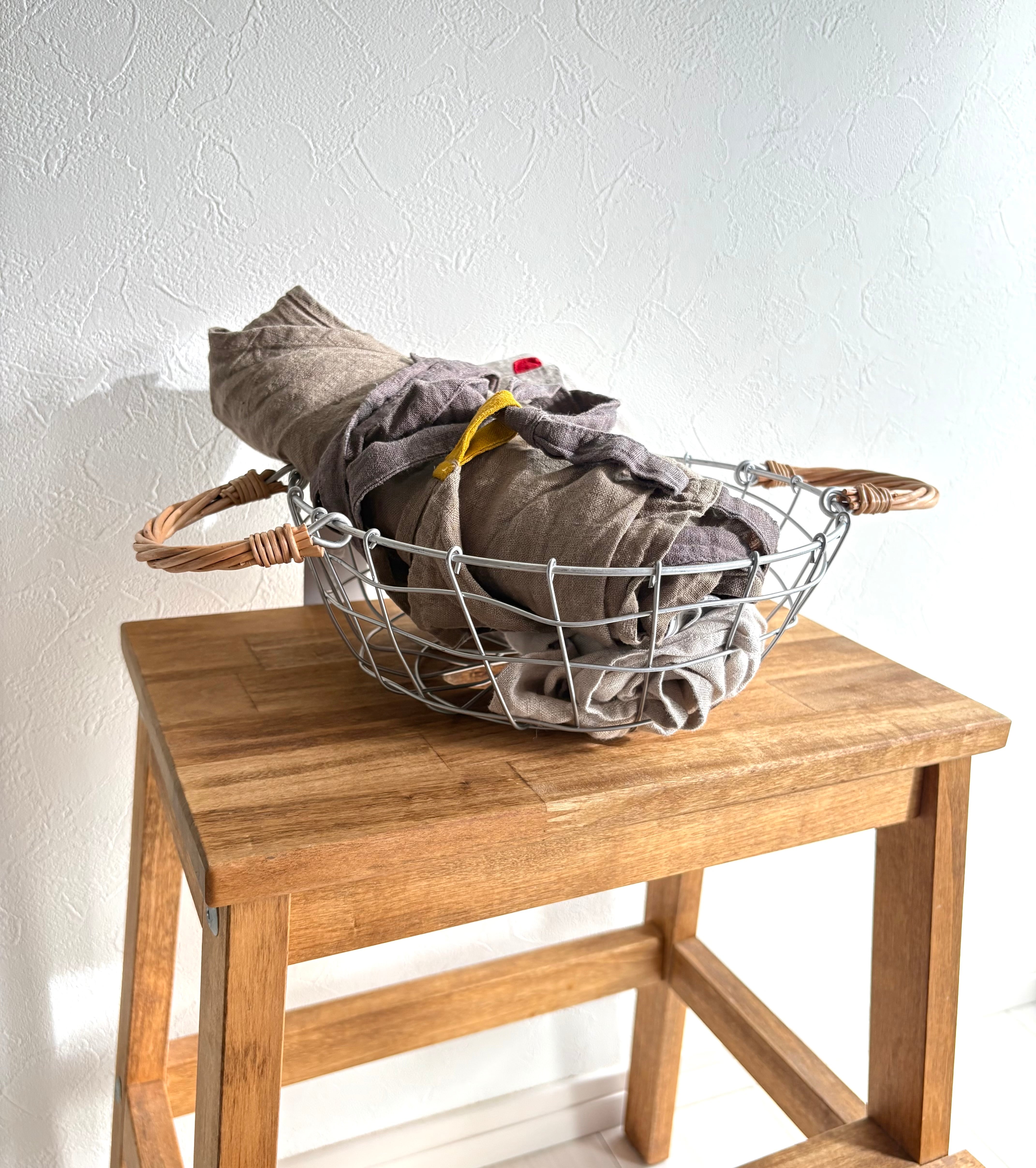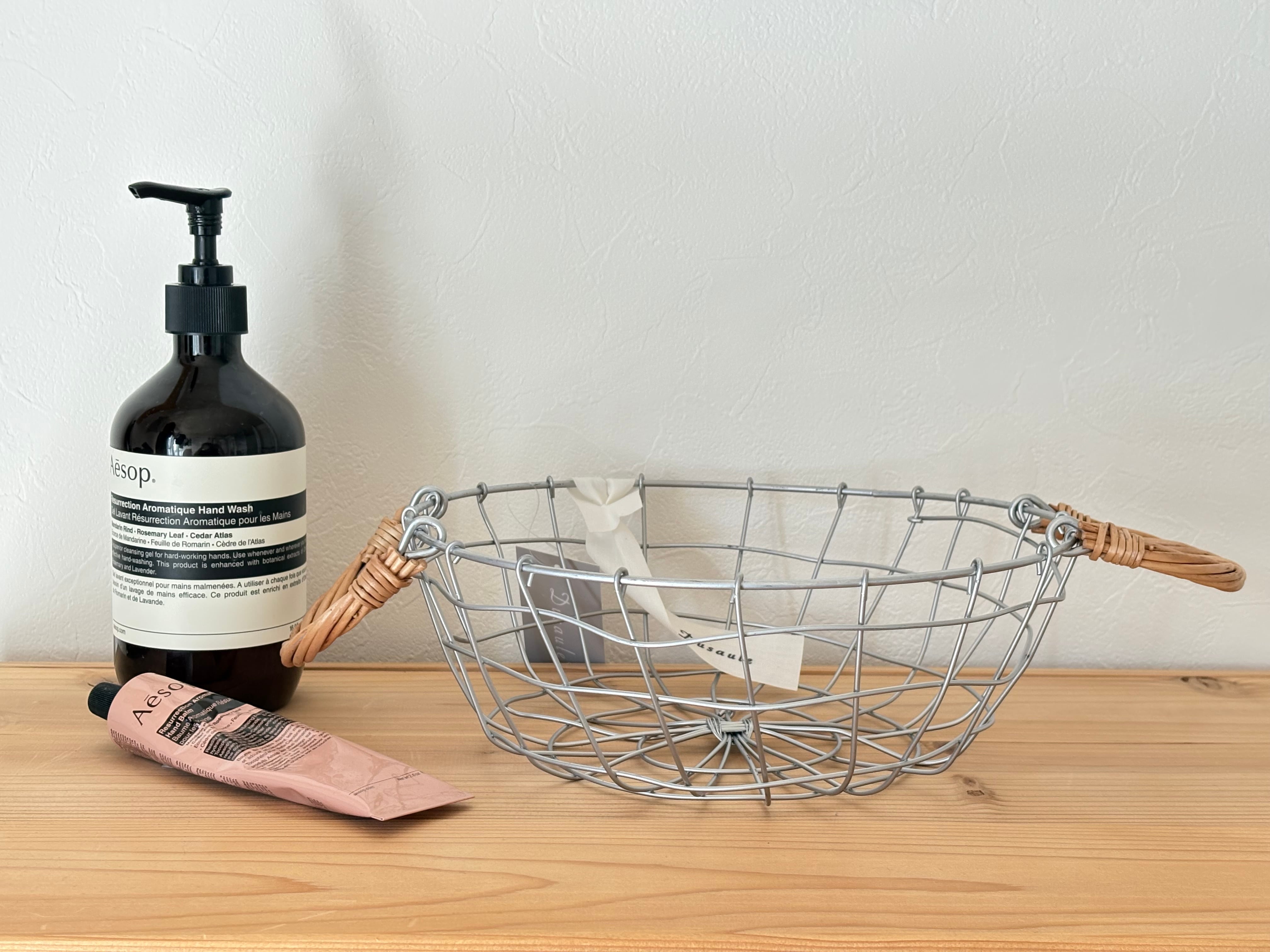バスケットの左右にハンドルが付いているので持ちやすく、お部屋間の移動もラクラク♪ほかのワイヤーバスケットあわせて使うと統一感がでてますますおしゃれに♡