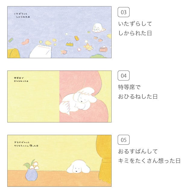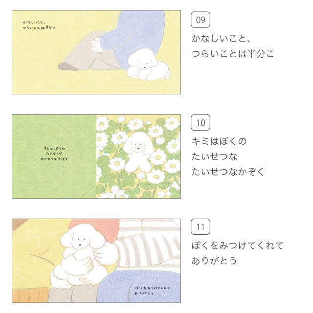 最後のページに自分の素直な気持ちをプラスして想いを書くことのできるスペースを設けた犬の絵本です。