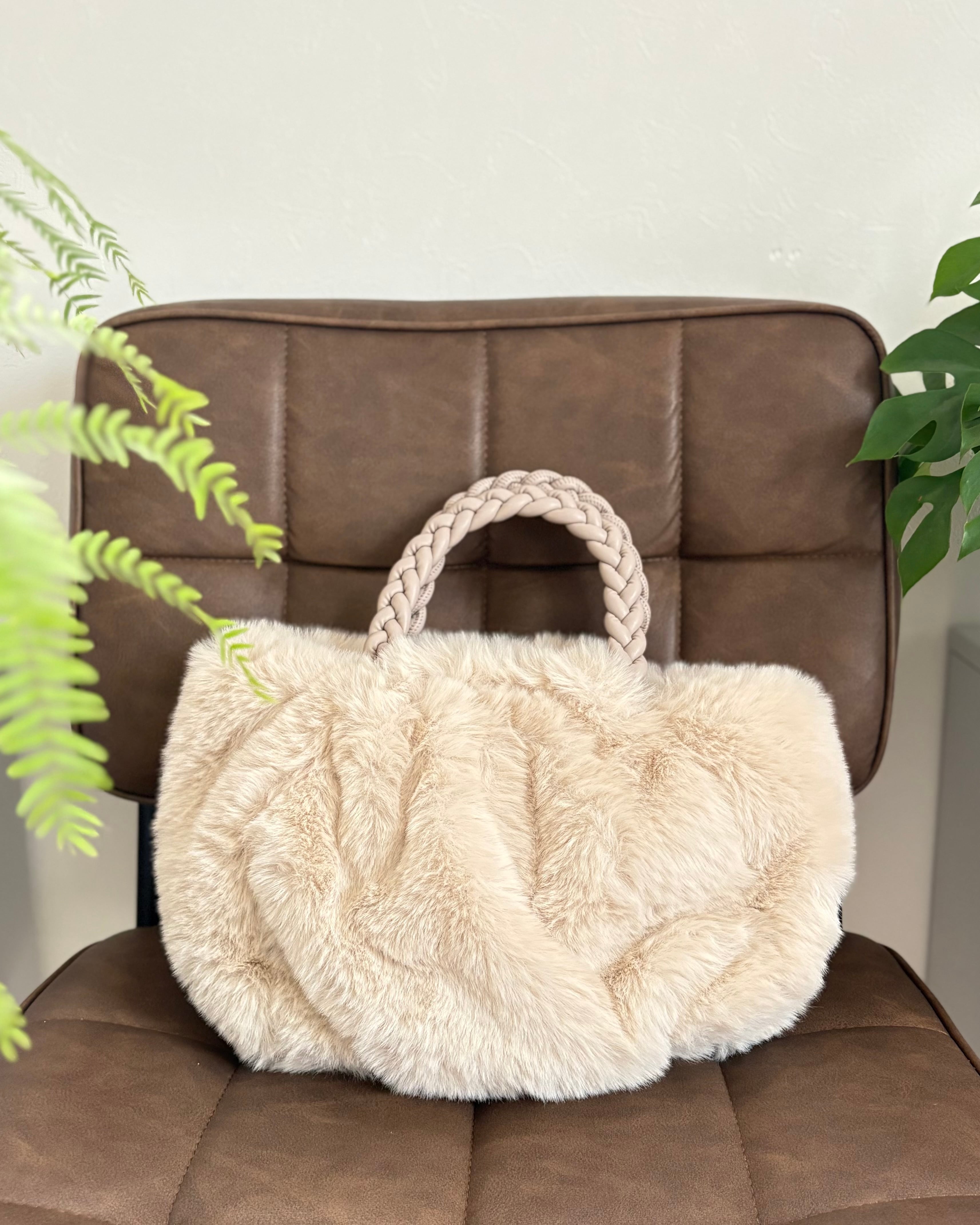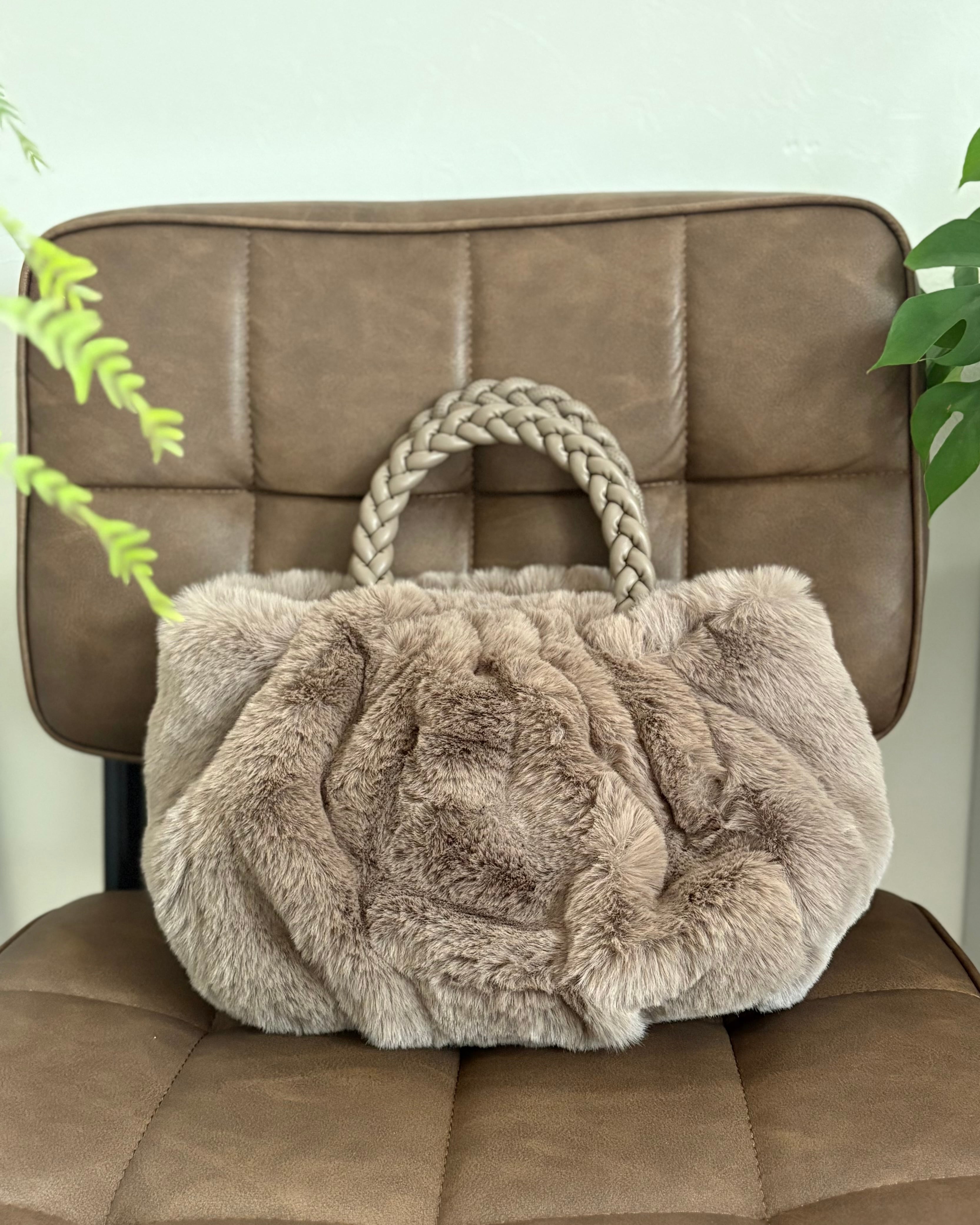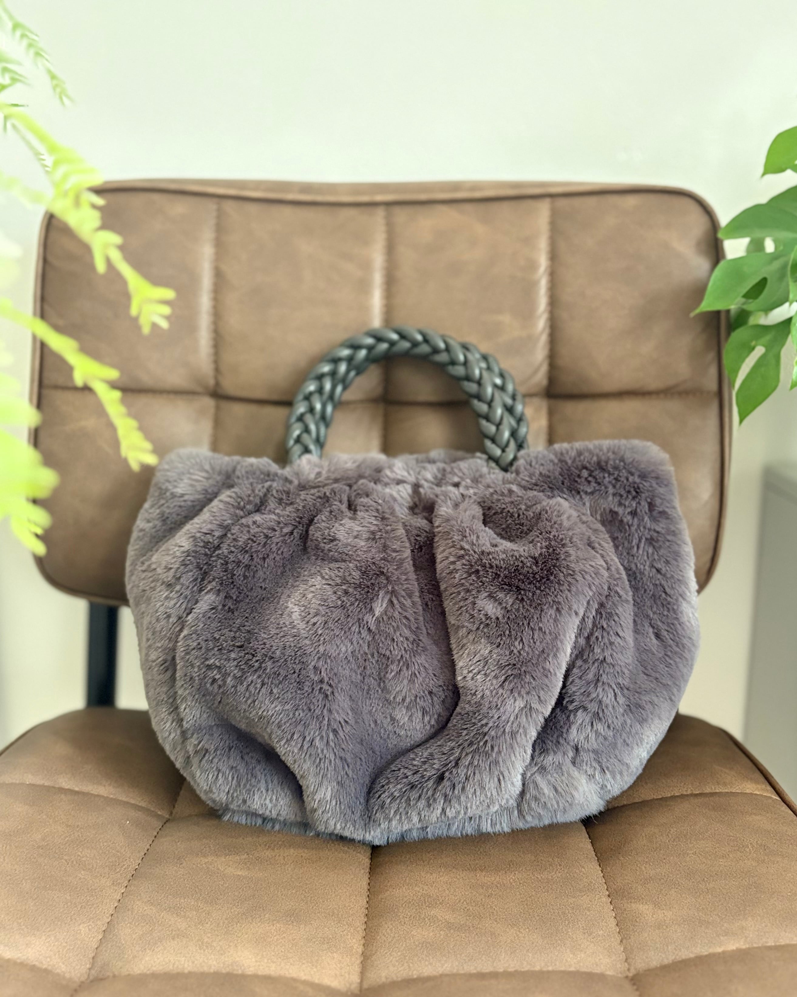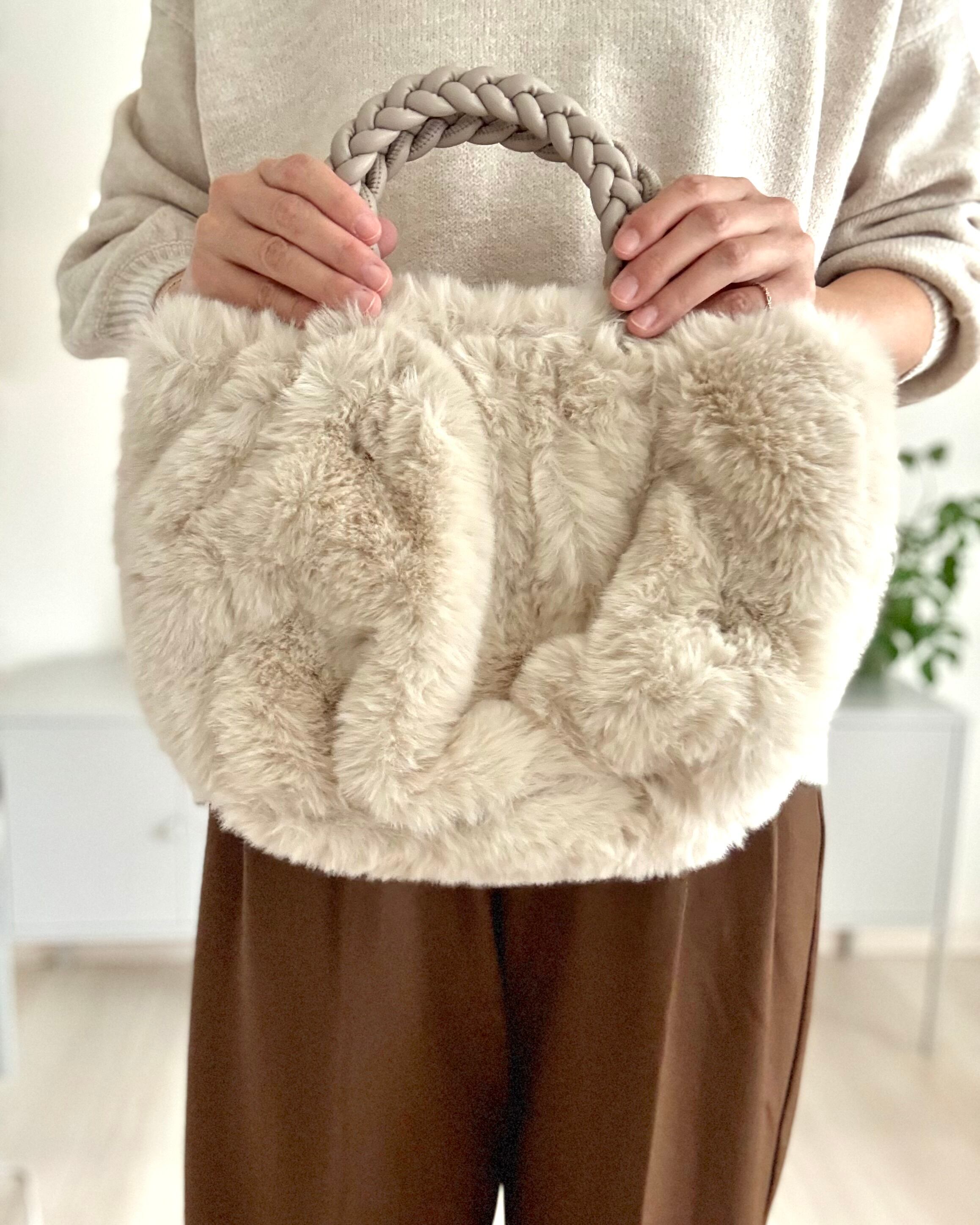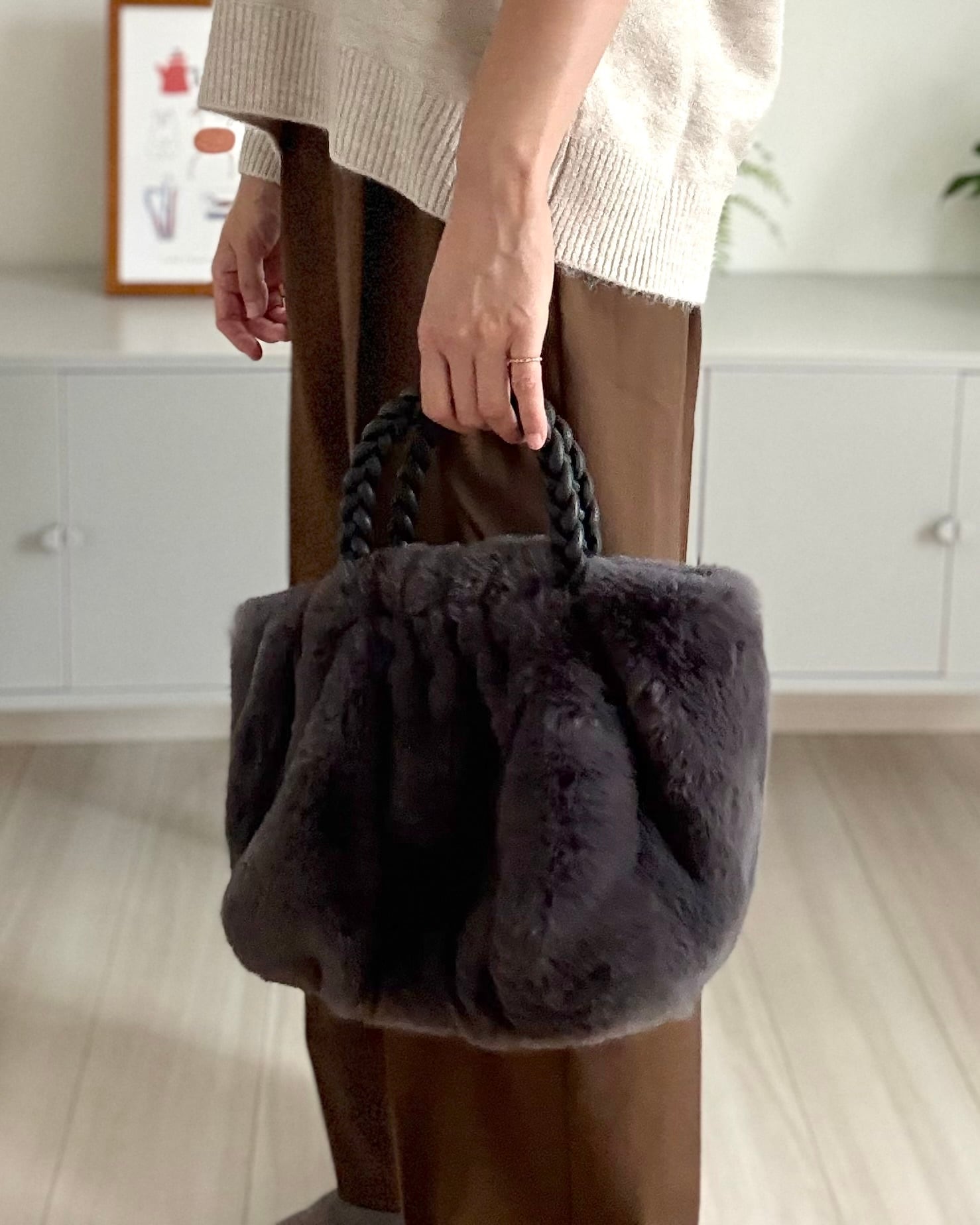 上質な手触りの良いフェイクファーで、ふわふわのファーバッグです。