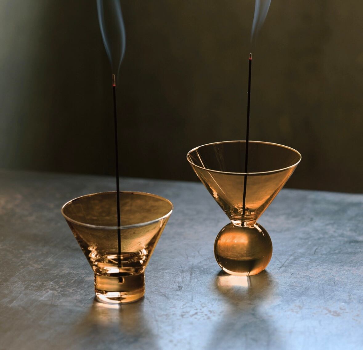 こちらはインテリアブランド " HUNT9 "のインセンスホルダーです。グラスのフォルムはうっとりする美しさ。円形の土台がとてもおしゃれです。